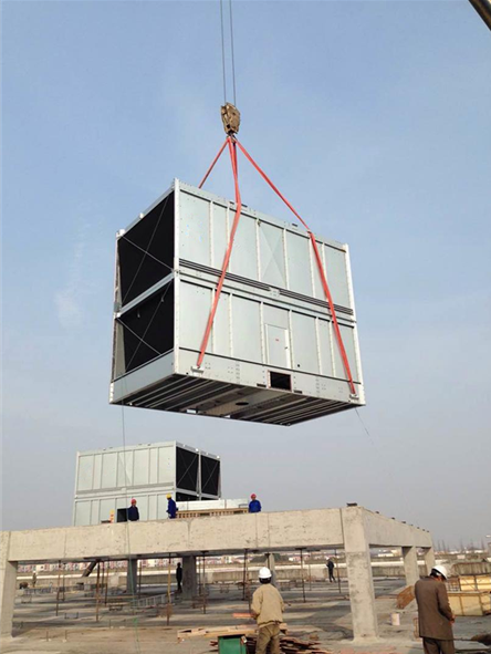 惠州東江環(huán)保橫流方形冷卻塔安裝 廣東特菱空調(diào)(http://www.xaysljd.com)方形橫流式玻璃鋼冷卻塔結(jié)構(gòu)特點(diǎn): (1)擋板:玻璃鋼材質(zhì),表面光滑美觀,耐腐蝕,防老化。 (2)填料:改性聚氯