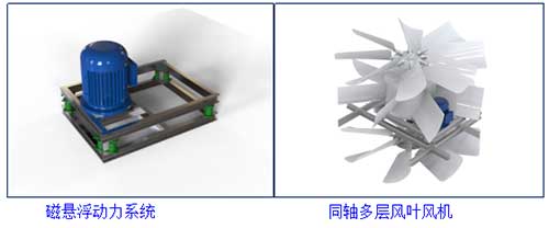 為盡量降低冷卻塔本體的風(fēng)機(jī)噪聲,采用同軸多層風(fēng)葉超靜音風(fēng)機(jī)(21片),經(jīng)鈍化處理的鋁合金葉片具有耐化學(xué)性腐蝕的特性。該風(fēng)機(jī)的原理是降低轉(zhuǎn)速(120轉(zhuǎn))增加風(fēng)量,同比普通風(fēng)機(jī)可以達(dá)到降噪接近20dB(A) 的效果,為滿足更加嚴(yán)格的降噪條件開創(chuàng)了新的標(biāo)準(zhǔn)。